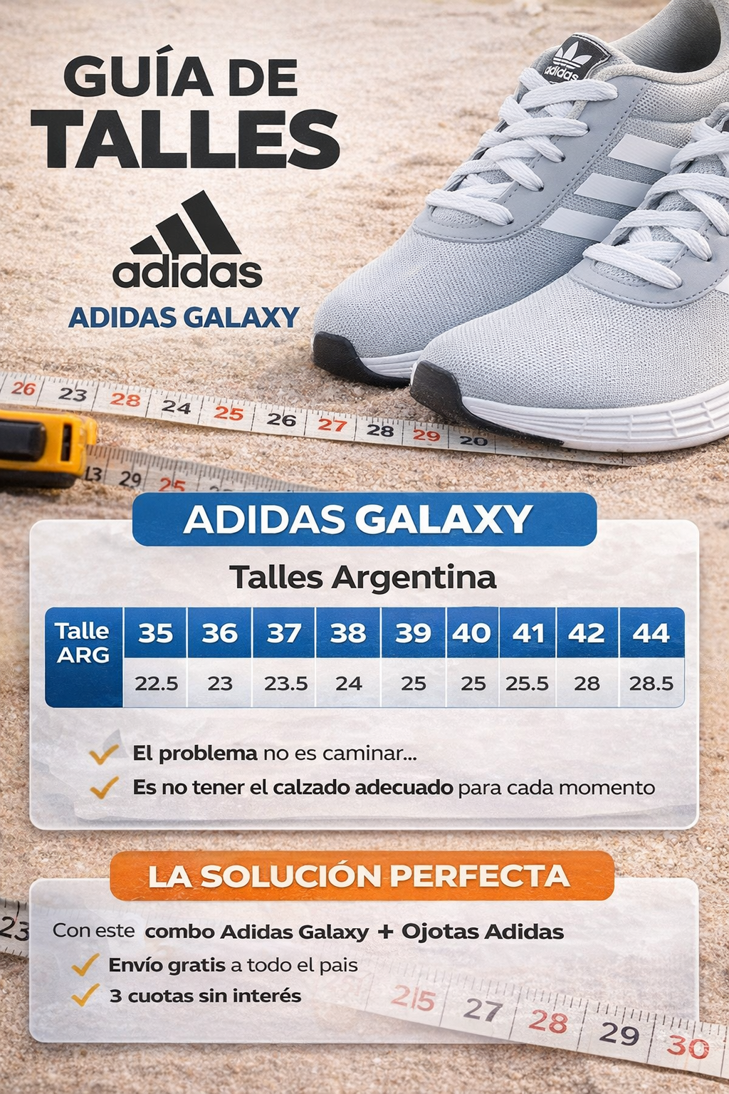 Con este combo Adidas Galaxy + Ojotas Adidas, tenés comodidad asegurada desde que salís hasta que descansás.